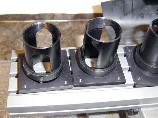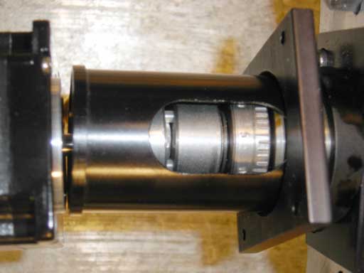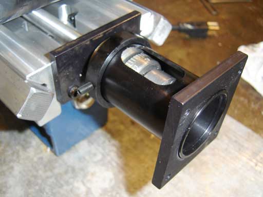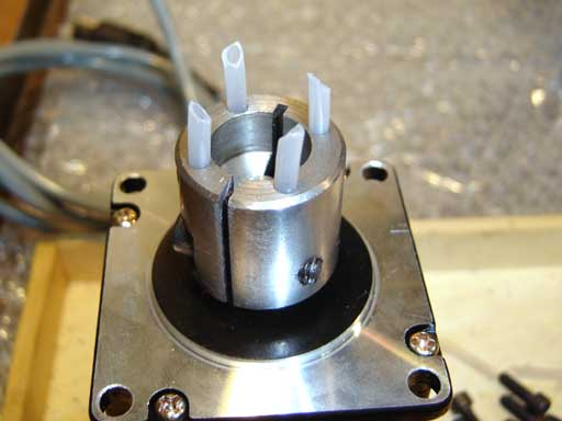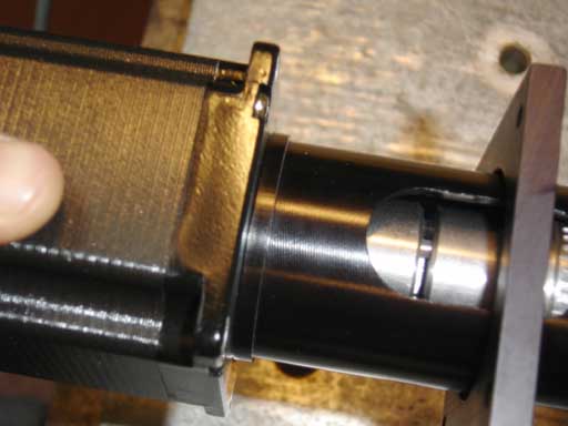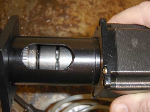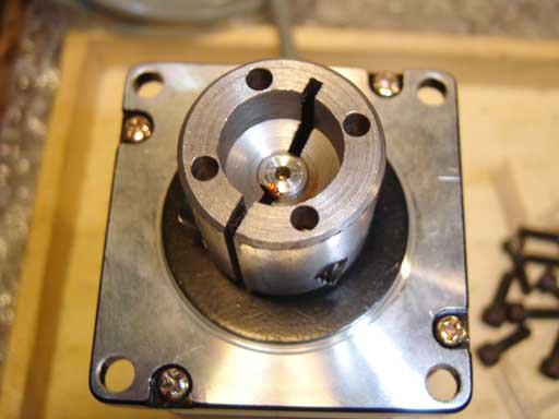 The stepper motor coupling half. The stepper shaft should be just at the bottom of the bore. The side screw clamps it tight. |