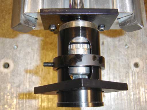 The tube threads onto the bearing block, and the collar clamps it once adjustement is completed. |
