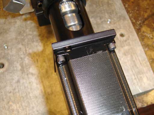 The motor is fastened to the plate. Make sure that the motor doesn't "cock" when the screws are tightened. |