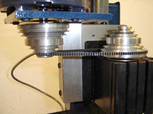 The motor assembled. When running the mill for the first few times you will notice that it has a hard time coming up to speed on the fastest pulley setting. After time the grease will thin and everything will start fine, but at first run it in the next to highest groove until the headstock warms up. |