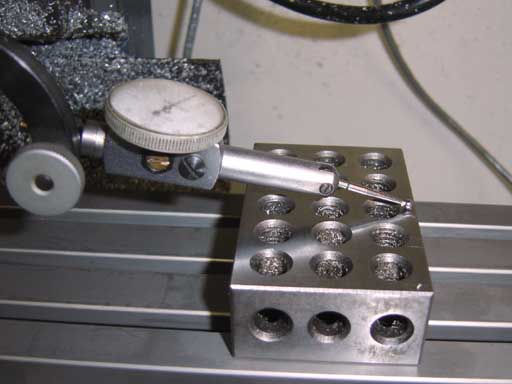This is somewhat advanced, determining if the slide travel is perpendicular to the table by running the inidcator up and down a square (1-2-3 block) on the table, and adjusting the column by tapping with a soft hammer while the mounting nut is slightly loose. |